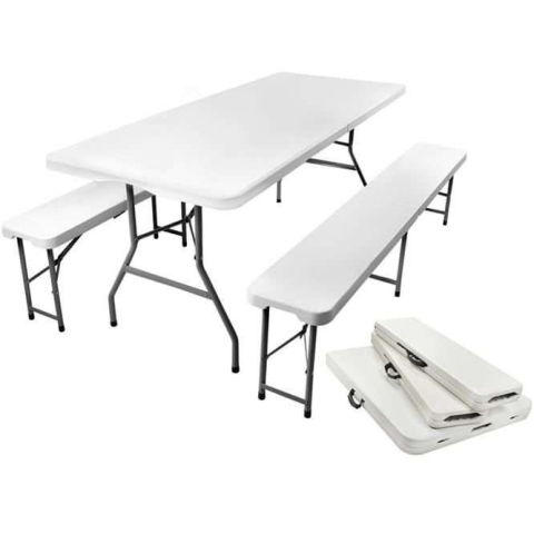 Teljes Gardlov Malatec Prémium összecsukható Kerti asztal 2 sörpaddal 180cm - fehér termékleírás