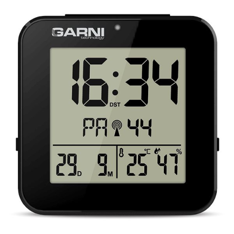 Ébresztőóra - digitális időjelzés, elemes tápellátás, 2 db AA elemmel működik, 2/24 órás időformátum, DCF-77 rádiójelzés által irányított idő, időzóna, éjjeli fény, szundi, kijelző világítás és relatív páratartalom mérése A tágas, 52 × 50 mm-es LCD kijelzőn láthatod a DCF-77 jellel vezérelt pontos időt, dátumot, a hét napjának rövidítését, a belső hőmérsékletet és a relatív páratartalmat. A GARNI 138B okos ébresztőóra