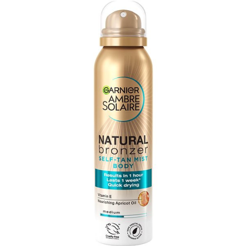 Önbarnító permet - E-vitaminnal gazdagítva, tápláló sárgabarackolajat tartalmaz, természetes, csíkmentes barnulást biztosít, amely akár egy hétig is kitart Rádi byste získali krásné opálení, ale zrovna nesvítí sluníčko? Samoopalovací mlha GARNIER Ambre Solaire Natural Bronzer vám poskytne úžasné opálení už po první aplikaci. Jednoduše se nanáší, rychle s