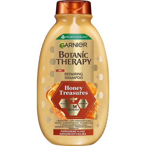 Sampon - hagyományos sampon, sérült hajra ajánlott, tápláló hatás, 400 ml-es kiszerelésben A GARNIER Botanic Therapy Honey ideális sampon minden olyan nő számára, aki szép, egészséges és táplált hajat szeretne. A Botanic Therapy jótékony mézzel és propolisszal gazdagított öss