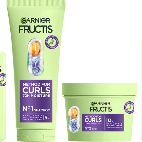 Hajápoló szett - tartalma: sampon 200 ml, hajmaszk 370 ml, hajpakolás 200 ml, hajspray 150 ml GARNIER Fructis Curls Method Set hajápoló készlet 920 mlA GARNIER Fructis Curls Method Set hajápoló készlet száraz, hullámos és göndör hajra intenzív hidratálást biztosít a száraz, hullámos és göndör