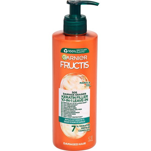 Hajszérum - sérült és száraz hajtípusra, regeneráló hatás, természetes olaj tartalmú A GARNIER Fructis SOS Repair 10 az 1-ben intenzív gondoskodást kínál a sérült haj számára: regenerálja és táplálja a hajat, amelyet a rendszeres hajformázás és színezés károsít. Ez az öblítésm