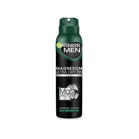 Izzadásgátló - férfi, spray, érzékeny bőrre ajánlott, védő, hosszantartó hatás, nem hagy foltot, ásványi, alkoholmentes, 150 ml-es kiszerelés A GARNIER Men Magnesium Ultra Dry férfi izzadásgátló akár 72 órán keresztül védelmet nyújt az izzadás és a kellemetlen szagok ellen. A magnéziumot tartalmazó izzadásgátló csökkenti a bőr felületén kép