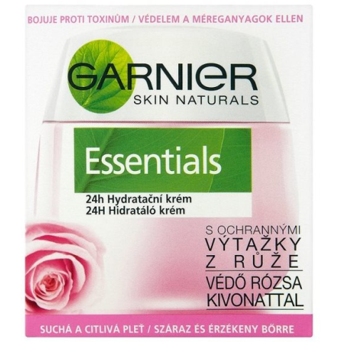 Arckrém - érzékeny és száraz bőrre ajánlott, 15+ korosztály számára GARNIER Skin Naturals Essentials 24 órás hidratáló arckrém száraz és érzékeny bőrre védő rózsakivonattal, amely nyugtatja, táplálja és puhává varázsolja arcbőrödet. A hidratáló glicerinnek, E-vitaminn