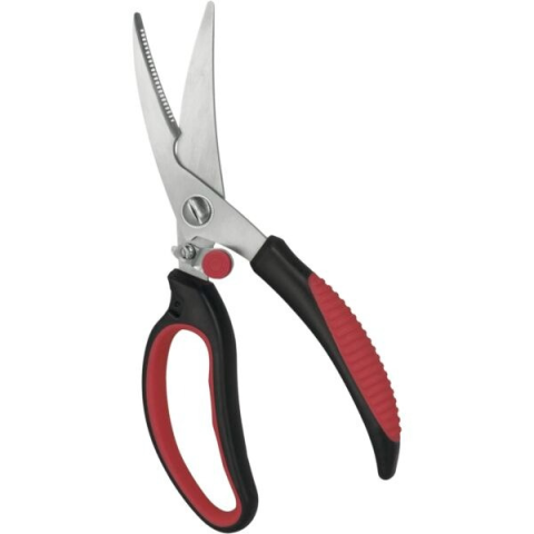 Gastro baromfiolló csúszásgátló, puha fekete/piros fogantyúkkal. Rozsdamentes acélból készült olló reteszelő gombbal és biztonsági zárral a kényelmes használathoz.