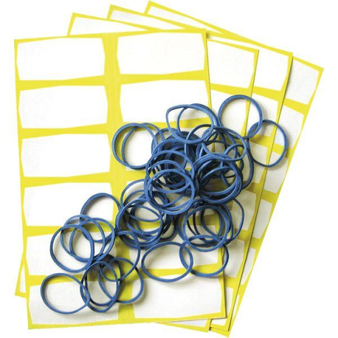 A szett 48 címkét és 48 gumipántot tartalmaz