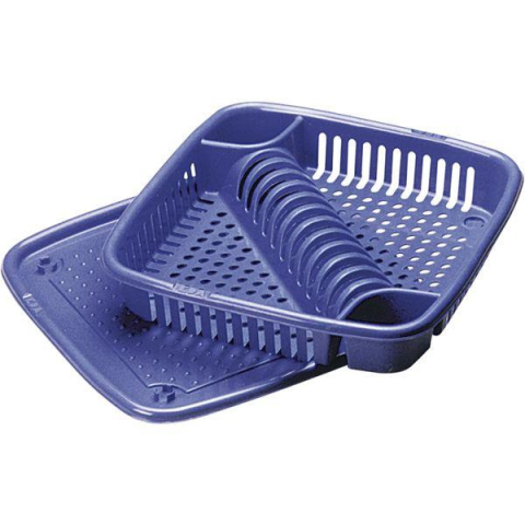 A Moser Gastro kék műanyag edénycsepegtetője tálcával, 40x40 cm-es mérettel ideális a mindennapi konyhai használatra. Praktikus és funkcionális kiegészítő az edények hatékony szárításához.