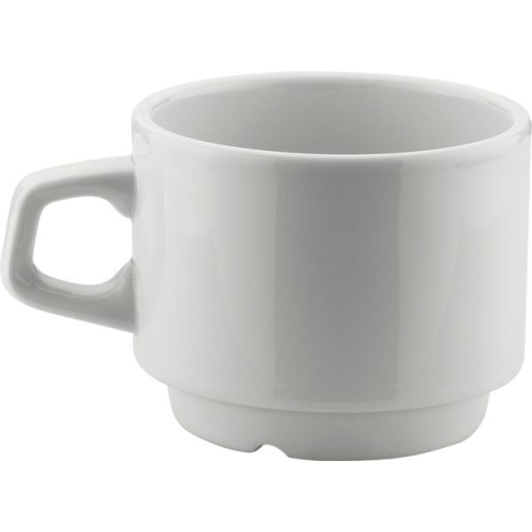 A Gastro Frig márkájú fehér porcelán kávéscsésze egymásra rakható és 180 ml űrtartalmú. Ideális a 221100714 cikkszámú csészealjjal való kiegészítésre. Az űrtartalom a csésze pereméig van megadva, a használható űrtartalom kevesebb. A Gastro márka a minőség és megbízhatóság garanciája vendéglátóhelyeknek, éttermeknek, szállodáknak és háztartásoknak.