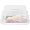 Magasság: 45, 52 mm Hossz: 195, 207 mm Szélesség: 195, 207 mm Szín: természetes, átlátszó Változat: fogantyúval, fogantyúval és középre állító peremmel Változat 2: magas, rakásolható illeszkedik: tányér 180 x 180, tányér 200 x 200 mm Anyag: polipropilén