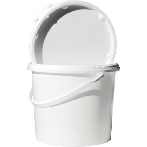 Műanyag fedő a vödörhöz, amely szórt és folyékony alapanyagok tárolására és szállítására alkalmas az élelmiszeriparban. A fedőbiztonsági zárral van ellátva. Megfelel az élelmiszerrel való érintkezés feltételeinek.