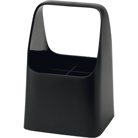 A Stelton Handy-Box fekete evőeszköztartó ideális evőeszközök és konyhai eszközök tárolására. 190 mm magas, 120 mm hosszú és 120 mm széles méretével könnyen elfér a konyhapulton. A Stelton gyártmánya.