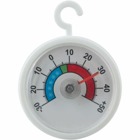 Hűtő/fagyasztó hőmérő, analóg, kerek, színes skála könnyeb hőmérséklet leolvasásra - higanymentes - tapasztható ( ragasztószalag hástó felin) vagy felakasztható, mérési tartomány -30°C és +50°C