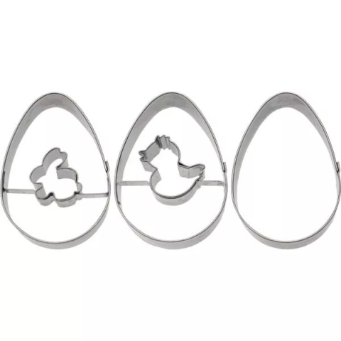 Húsvéti kiszúróforma, rozsdamentes, 3 db, nyuszi/csibe/tojás.