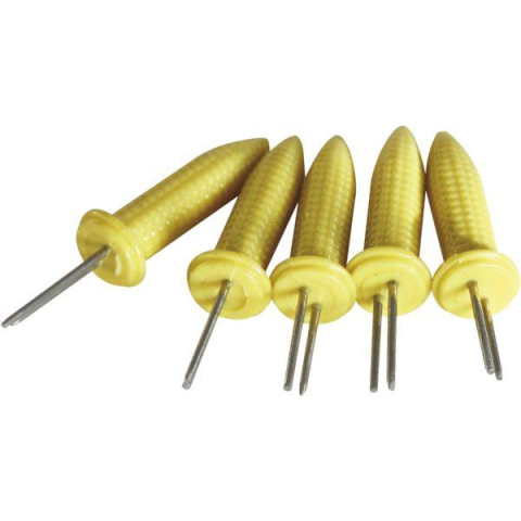 6 darab sárga Gastro kukoricatartó készlet. Rozsdamentes acélból készült, ideális kukorica tálalásához. Gyakorlati konyhai kiegészítők mindennapi használatra.