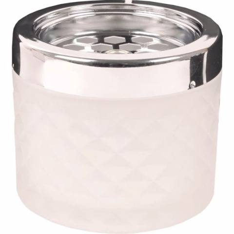 Fehér üveg Gastro szélálló hamutartó krómozott fedéllel, 9,6 cm átmérővel ideális kültéri és beltéri használatra. Az üveg hamutartó szélálló, átmérője 96 mm és magassága 67 mm.