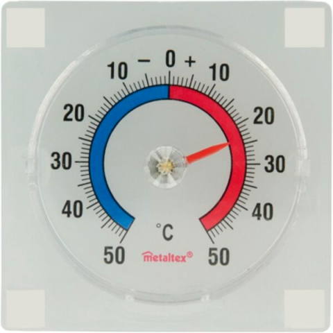 Műanyag ablakra ragasztható, öntapadós hőmérő, higanymentes. Kijelzi a hőmérsékletet -50 °C-tól +50 °C-ig. A hőmérő kültéri hőmérséklet mérésére szolgál. Alkalmas otthonok, irodák és ipari üzemek számára.