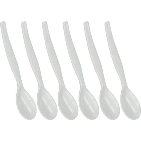 A készlet 6 darab fehér műanyag kanalat tartalmaz