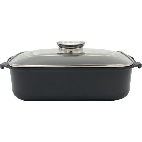 Könnyű alumínium ötvözet.Egyenletes hőeloszlás.Kíméletes főzéshez, pároláshoz és sütéshez.Sütőben használható 200°C-ig (fedővel 180°C-ig).Belső méret 34,5x24 cm, külső méret fogantyúval 40x25,8 cm.