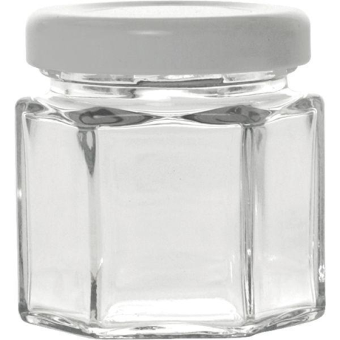 1 kép Gastro Szögletes lekváros befőttes üveg, 47 ml, 12 db, hatszögletű, fehér fedő, Gastro