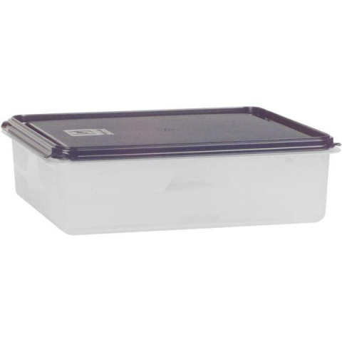 Moser GN 2/3 élelmiszertartály 8,8 l űrtartalommal ideális a friss élelmiszerek tárolására. Szögletes formájának és áttetsző fekete színének köszönhetően minden konyhába illik. Műanyagból készült, magassága 100 mm és mélysége 100 mm.