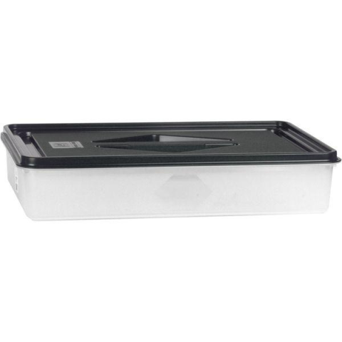 Alacsony fekete Moser GN 1/1 élelmiszertároló edény 14 l űrtartalommal, műanyagból készült. A fedeles, szögletes edény ideális friss élelmiszerek megőrzésére. Méretek: magasság 100 mm, mélység 100 mm, űrtartalom 14000 ml.