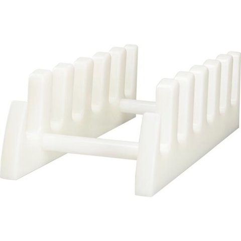 Fehér Gastro vágódeszka-tartó polietilénből, 6 konyhai vágódeszka számára, legfeljebb 30 mm vastagságig. A tartó ideális professzionális vendéglátóipari egységeknek, éttermeknek, szállodáknak és otthonoknak egyaránt.
