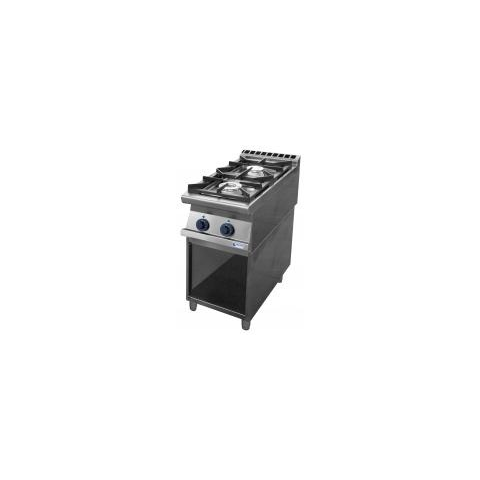 Gáztűzhely 2 égővel, három oldalon zárt tárolóval a 900-as szériából.Égők teljesítménye: 1x5,3, 1x8,3 kW.Összteljesítménye 13,6 kW.