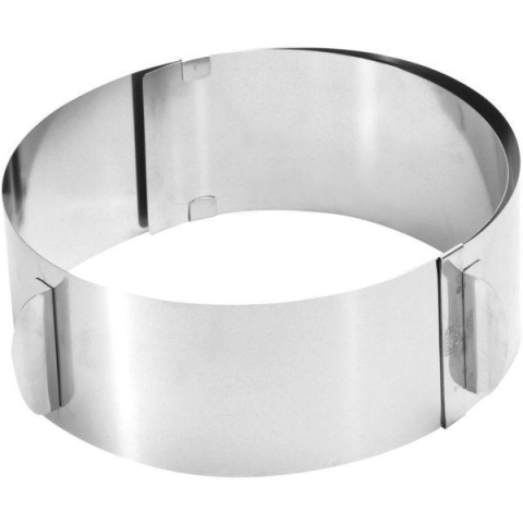 Állítható Gefu tortaforma rozsdamentes acélból, 16,5-32 cm tartománnyal, ideális különböző méretű torták sütéséhez. Minőségi króm-nikkel acélból készült. Magassága 85 mm. Mindenkinek, aki szeret sütni.