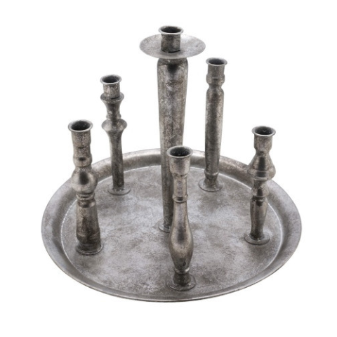A(z) Fém gyertyatartó tál 6 ágú 35,5x30cm, antikolt ezüst egy stílusos és igényes darab fém anyagból készült , mérete: 35,5x30cm . A termék a(z) Gehlmann márka kínálatából származik , eredeti származási helye: Németország.