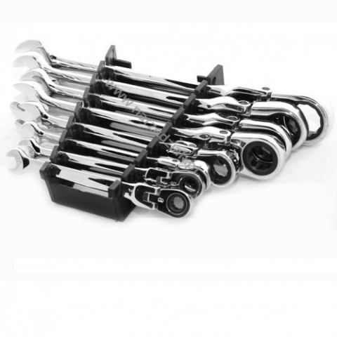 A termék leírása: Tartós króm-vanádium acélból (CrV) készült,racsnis, csuklós csillag-villás kulcskészlet (72 fogú mechanizmus) 8-22mm-ig. Professzionális kulcskészlet autóműhelyekben és házi garázsban is használható. A kulcsok falra akasztható műanyag t