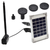 Napelemes vízszivattyú Merülő szivattyús rendszer ellenálló, napelemes modullal, horonytűvel. 4 különböző szökőkút alakú hosszabbítót csatlakoztathat a szivattyú fúvókájához. Ideális kerti tavakhoz vagy vízi növények tárolásához. A szivattyú közvetlen üzemmódban működik, akkumulátor használata nélkül, ezért a rendszer csak akkor működik, ha a panelre süt a nap. A panel forgócsuklóval van ellátva, hogy ideálisan beállítható legyen a panel a nap