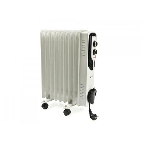Olajradiátor 1500W 7 bordásHatékony olajradiátor, ideális nem kifűtött és központi fűtés nélküli helyiségekben. Az olajradiátorok, ahogy a nevükben is benne van, olajjal vanak töltve, amit elektromos spirál melegít fel. Az olaj sokkal tovább megtartja a hőt, aminek köszönhetően a radiátor meleg marad az áramról való lekapcsolása után is. A berendezés állítható termosztáttal és 3 fokozatú fűtési teljesítménnyel rendelkezik.Technikai paraméterek:Áramellá