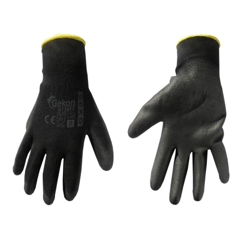1 kép Geko pamut szerelőkesztyű poliuretán bevonattal (fekete) M / 8