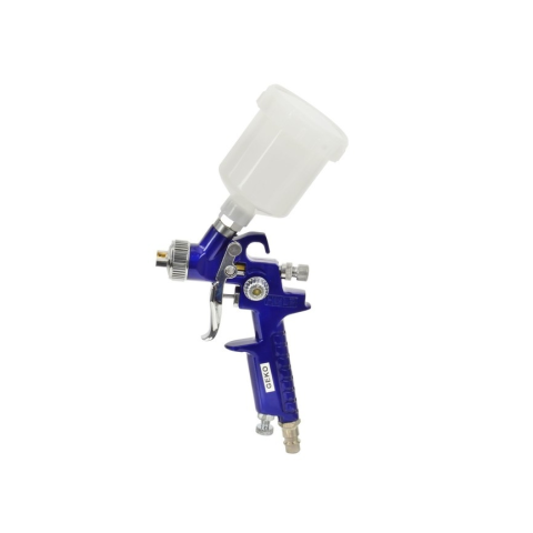 Szórópisztoly 0.8mmSzórópisztoly 125 ml-es tartállyal és 0,8 mm-es fúvókával vízzel hígítható lakkokhoz, akril festékekhez és fémes és gyöngyházas elemeket tartalmazó festékekhez. A HVLP technológia (High Volume Low Presure) megakadályozza a festék lefolyását alacsony légnyomásnál is. A pisztoly lehetővé teszi a festék szórásának szabályozását két síkban.Technikai paraméterek: Szórófejek: 0,8 mmLégnyomás: 3 barLevegőfogyasztás 170l/minSzínkapac