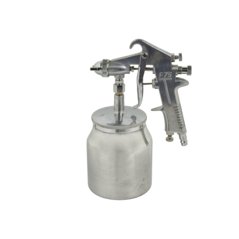 Szórópisztoly F - 75S 1.5 mmSzórópisztoly 750 ml-es tartállyal és 1,5 mm-es szórófejjel vízzel hígítható lakkokhoz, akrilfestékekhez és fémes és gyöngyházfényű komponenseket tartalmazó festékekhez. A pisztoly lehetővé teszi a festék szórásának szabályozását két síkban.Technikai paraméterek:Üzemi nyomás: 3 – 5 barTartály kapacitása: 750 mlLevegőfogyasztás: 90 - 230 l/minGyorscsatlakozó: 1/4"Anyag: alumínium ötvözet