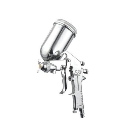 Szórópisztoly F-75G 1.5mm 300ml Szórópisztoly 300 ml-es tartállyal és 1,5 mm-es szórófejjel vízzel hígítható lakkokhoz, akrilfestékekhez és fémes és gyöngyházfényű komponenseket tartalmazó festékekhez. A pisztoly lehetővé teszi a festék szórásának szabályozását két síkban.Technikai paraméterek:Tartály mérete: 300 mlSzórófej mérete: 1,5 mmNyomás: 3 – 5 barGyorscsatlakozó: 1/4"Levegőfogyasztás: 90-230 l/min