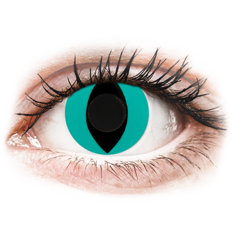 CRAZY LENS Cat Eye Aqua zöld napi lencsék. A tökéletes kiegészítő jelmezhez. Remek fedés. 2 db színes lencse dobozonként.