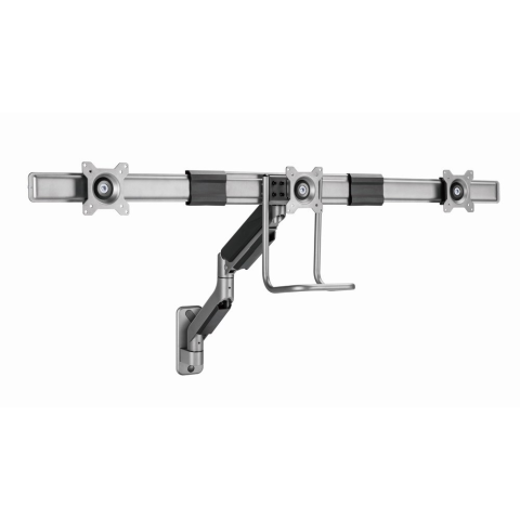 Kijelző, Fali, Min 17, Max 27 Monitor fali tartó egy karral 3 monitorhozA kar forgatható, kihúzható és behúzható, dönthető az olvasási szögek megváltoztatásáhozMonitortartó rúd 3 monitor egymás melletti rögzítéséhezKönnyű ergonomikus pozícionálást tesz