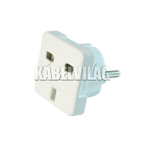 Konnektor átalakító, melynek segítségével angol konnektorhoz használt készülékeket tudunk európai hálózatról használni. Ez az adapter nem feszültségváltó! Alkalmazása előtt győződjön meg, hogy készüléke alkalmas-e a 230 voltos hálózati csatlakozásra.