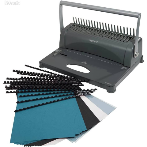 Spirálozó gép - gyűrűs, kézi, max. spirálméret: 38 mm, 350 lap fűzési kapacitás, lyukasztási kapacitás: 12 lap, tömege: 3700 g, kezdőkészlet spirálozásához, lyukasztás és állítható papír ütköző, mérete: 160mm × 390mm × 260mm (ma×sz×mé) A Genie CB850 gyűrűs spirálozó A4-es vagy A5-ös formátumokhoz készült, remekül használható minden irodában, emellett négylyukas funkcióval is rendelkezik. A spirálozó egyszerre akár 350 lap bekötésére