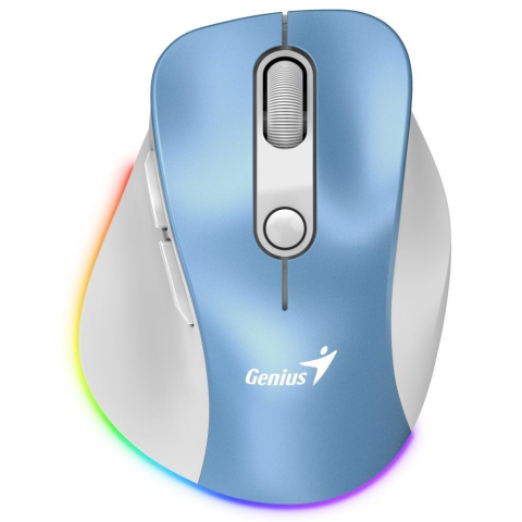 Egér - vezeték nélküli, optikai, jobbkezeseknek, csatlakozás módja bluetooth, USB-C és rádiófrekvenciás kapcsolat (2,4GHz), 1 elem, 2400 DPI érzékenység, 6 gombos, DPI-váltás gombbal, hagyományos görgő, többszínű háttérvilágítás, max. hatótávolság 10 m, vezeték nélküli USB vevőegység a csomag része, mérete 3,93 × 6,82 × 9,07 cm (Ma×Sz×Mé), tömege 65 g Szeretnéd magad boldoggá tenni egy megbízható egérrel? Ez az előnyös Genius irodai vezeték nélk