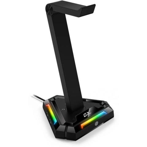 Fejhallgató állvány - asztali, RGB háttérvilágítás, fekete színű, mérete 25,5 × 16,3 × 14,3 cm (ma×sz×mé) The Genius GX-UH100 stand ensures that your headphones are stored in style. In addition, its base hides several features that you'll appreciate for gaming and work. The stand is equipped with
