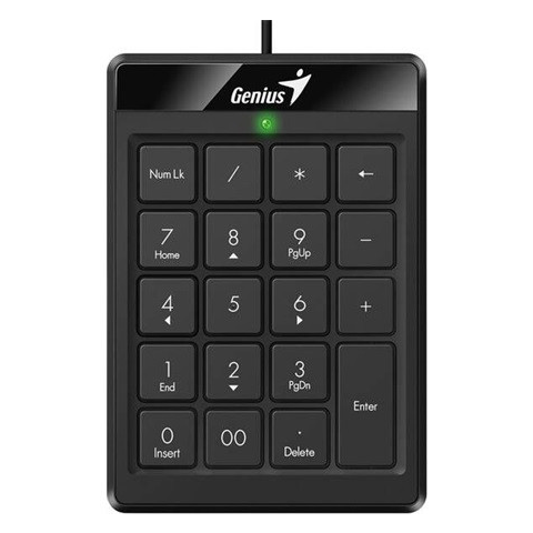 Numerikus billentyűzet - PC-hez és laptophoz, 90 cm-es kábellel, USB-csatlakozóval, méretek 20 × 91,9 × 131,9 mm (M×Sz×H), tömeg 119 g, fekete színben Külső numerikus billentyűzet vékony kialakításban a numerikus adatok gyors és kényelmes bevitelhez a PC-n vagy laptopon. A Genius NumPad 110 numerikus billentyűzet legfontosabb jellemzői és tulaj