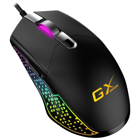 Gamer egér - vezetékes, jobbkezeseknek, optikai, csatlakozás módja USB, 7200 DPI érzékenység, DPI-váltás, 6 gombos, hagyományos görgő, RGB háttérvilágítás, kábel hossza 1,8 m, mérete 3,96 × 12,02 × 7,27 cm (Ma×Sz×Mé), tömege 120 g Megbízható gamer egérre van szükséged, amelyre támaszkodhatsz játék közben? Ez a praktikus Genius vezetékes gamer egér mindent biztosít, amit a számítógépes játékok szerelmesei keresnek. Teljes kényel