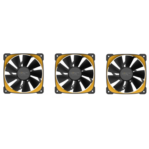 3 darab 25mm vastag 120mm-es házhűtő ventilátor PWM sebesség szabályzással és rezgéscsillapítós felfogatókkal. További különlegesség, hogy a lapátok és a ventilátor keret felülete speciális ötszög...