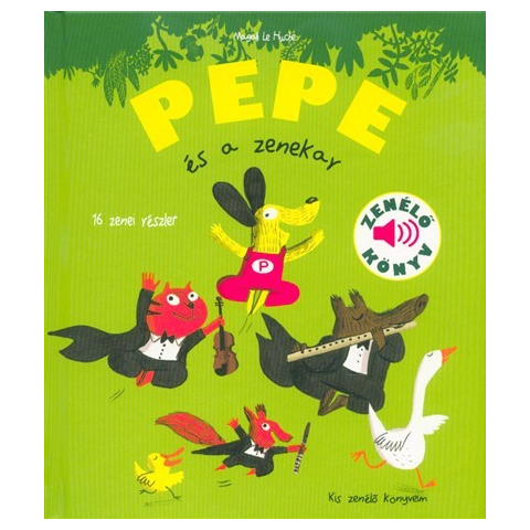 Nyomd meg a hangszórót, és megszólalnak a zenekar hangszerei.Cím: Pepe és a zenekar Zenélő könyv, 3 éves kortól