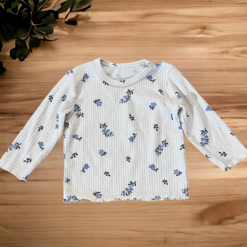 Kék virágos felső Egyenes szabású, kerek nyakkivágású, kellemes pamutos anyag. Hibátlan állapotú.