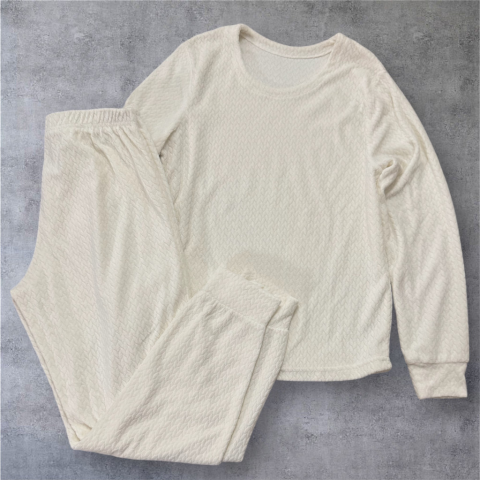 Vajszínű pizsama Kellemes és puha polár anyag, a nadrág dereka gumis. Hibátlan állapotú.