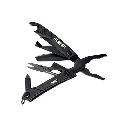 Multitool - felhasználás: mindennapos (EDC), része fogó, csavarhúzó, kulcstartó, olló, csipesz és palacknyitó is, acél anyagú markolat, hossza összecsukva 7 cm, hossza nyitott állapotban 10,8 cm A Gerber Dime Black-box multifunkciós fogó fekete színben. Sokoldalúsága abban rejlik, hogy a fogó alapfunkciója mellett további 10 eszközt kínál a mindennapi használatra, például ollót, nyitót, vagy