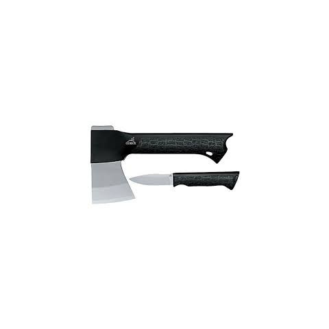 GERBER GATOR COMBO fejsze, a nyélben rözítheto késsel Feje kovácsot acél, nyelében mágnessel rögzített kés található. Csúszásmentes Gator Grip markolat a biztonságos használatért, övre fűzhető ballisztikus nyílon tok a kényelmes tárolásért. A fejsze te